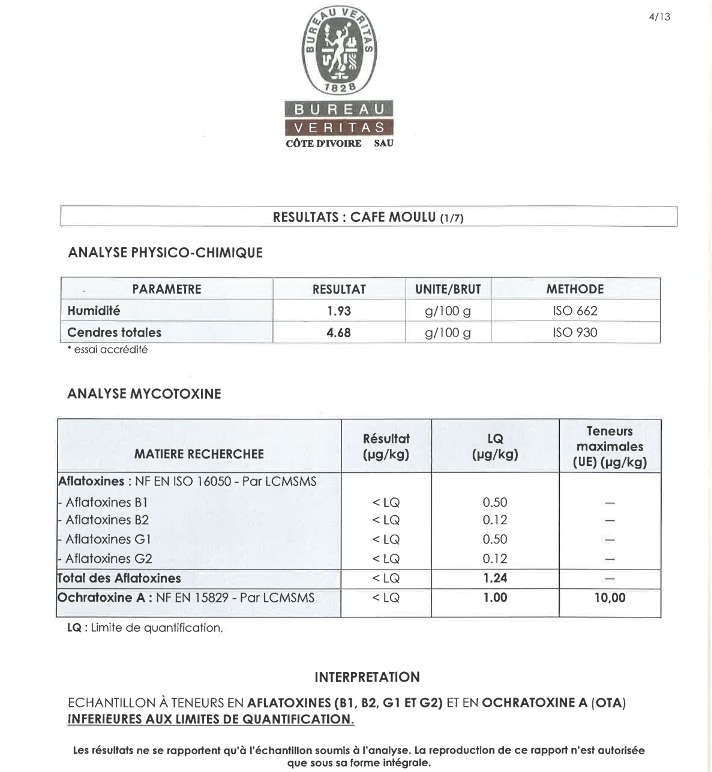 Teneur en cendres: 0,04% max en poids.